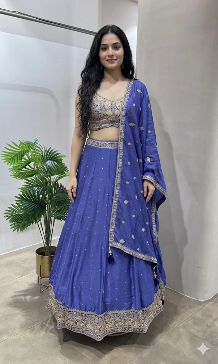 Be the first to review “Blue EMBROIDERED LEHENGA WITH FLORAL MOTIF DUPATTA”