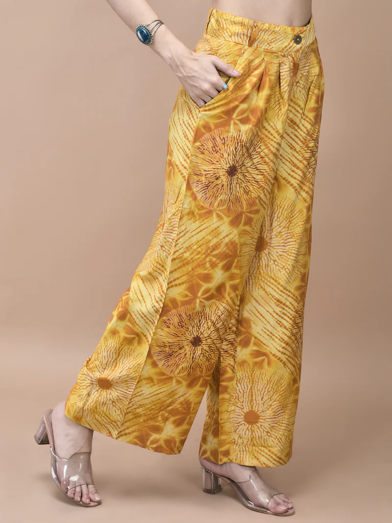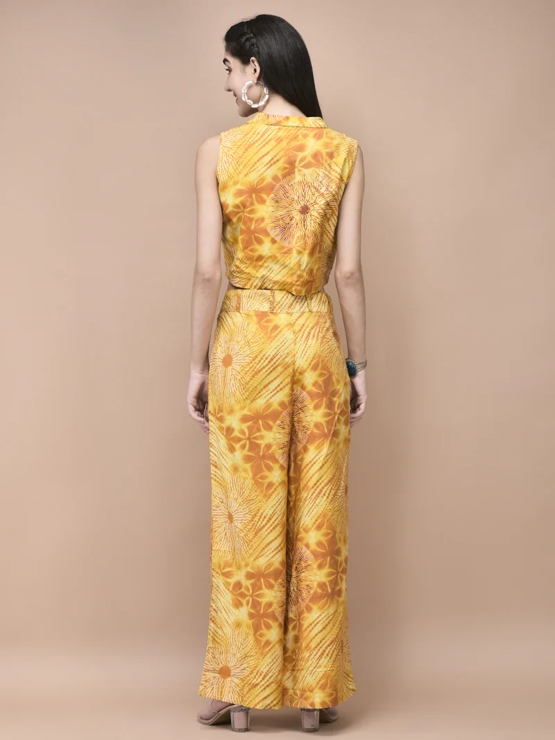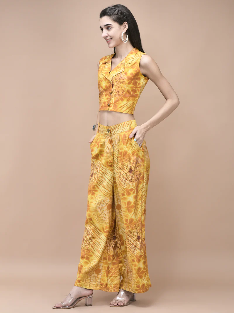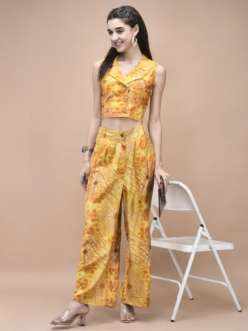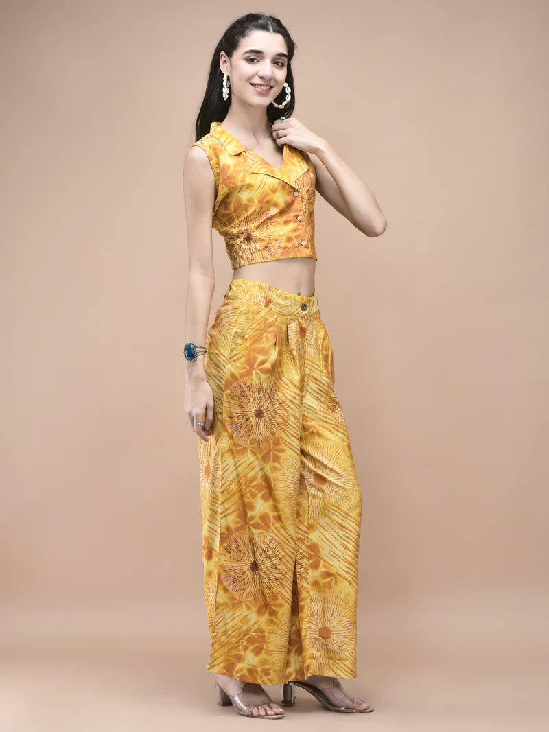 Women Liva Mustard Tie Dye Print Co-Ord Set